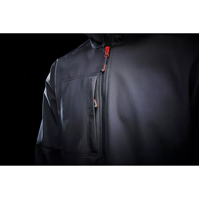 Softshell Finder in tessuto stretch con stampa rinfrangente all over. Presenta inserti in tessuto traspirante e dettagli reflex, zip waterproof, interno cappuccio in rete traspirante, tasca al petto e tasche chiuse con zip.