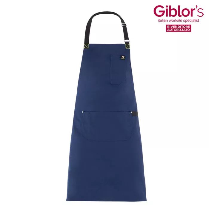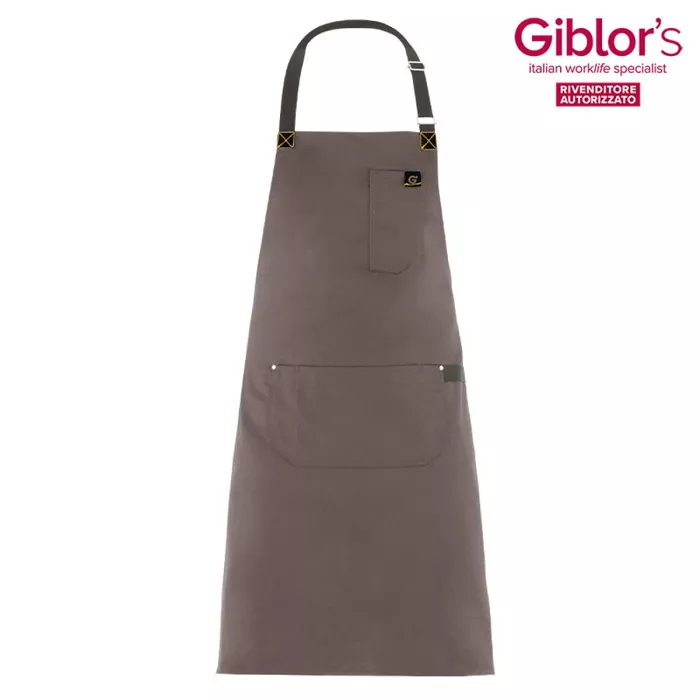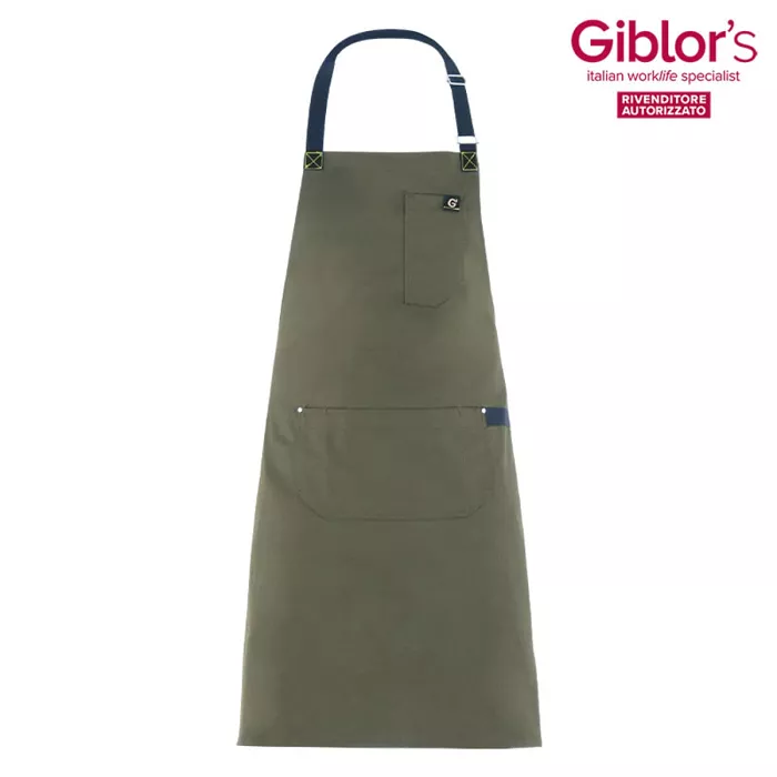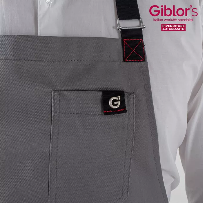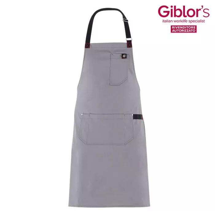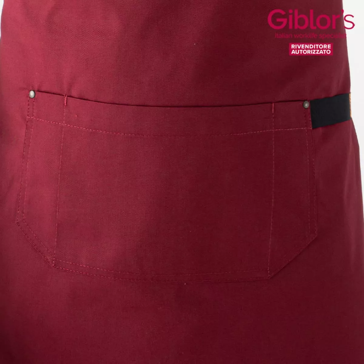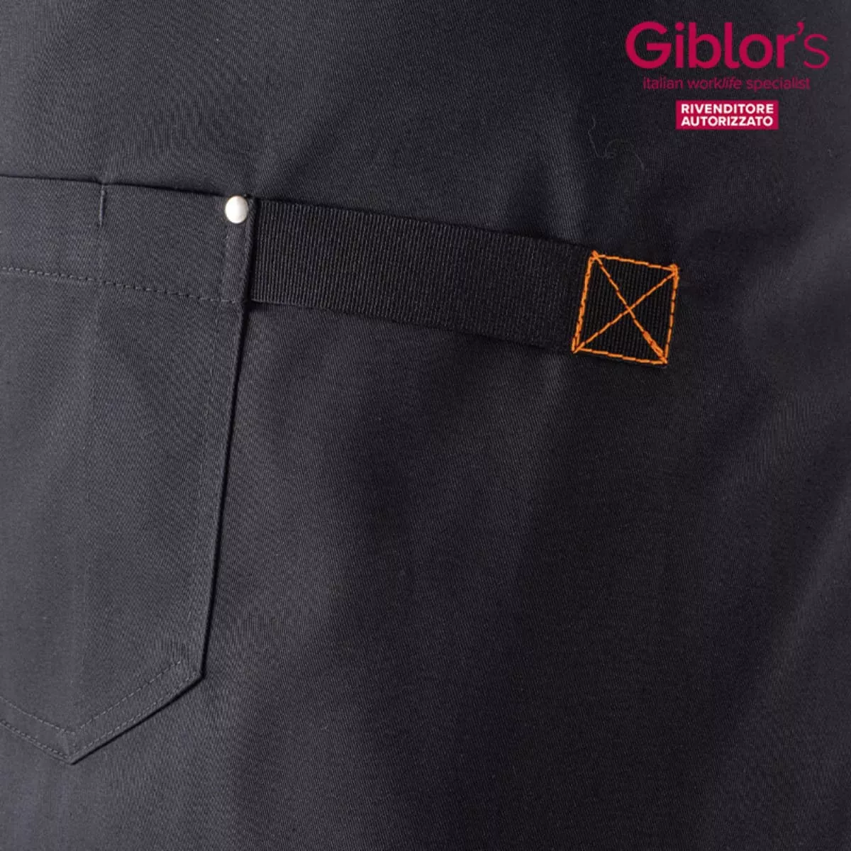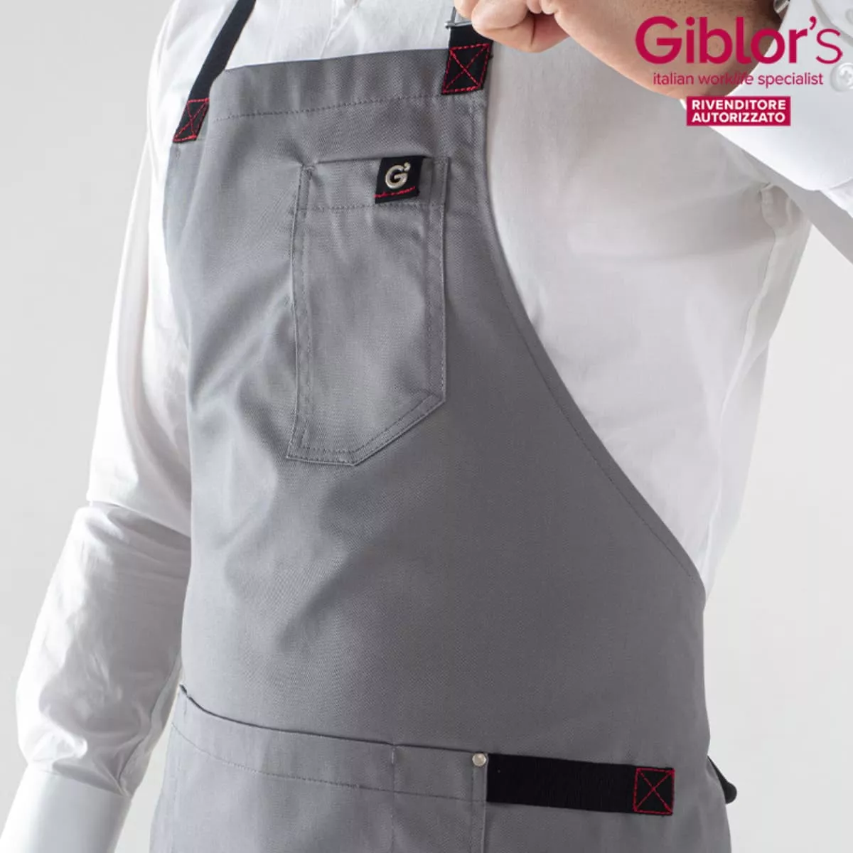 Grembiule Reno Giblor's della G’ Elegance Collection. E' un modello trasversale. Presenta due ampie tasche e i lacci che sono ancorati con travette che rendono il capo ancora piu' resistente.
