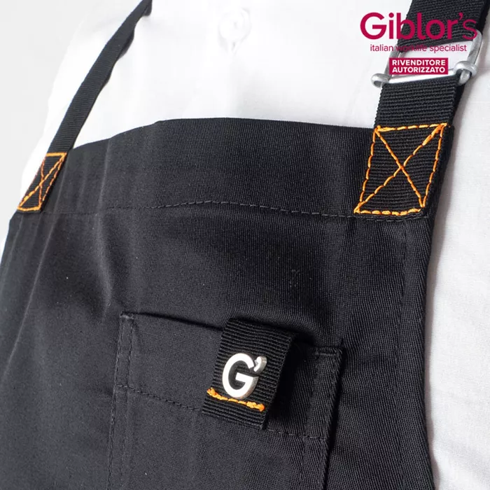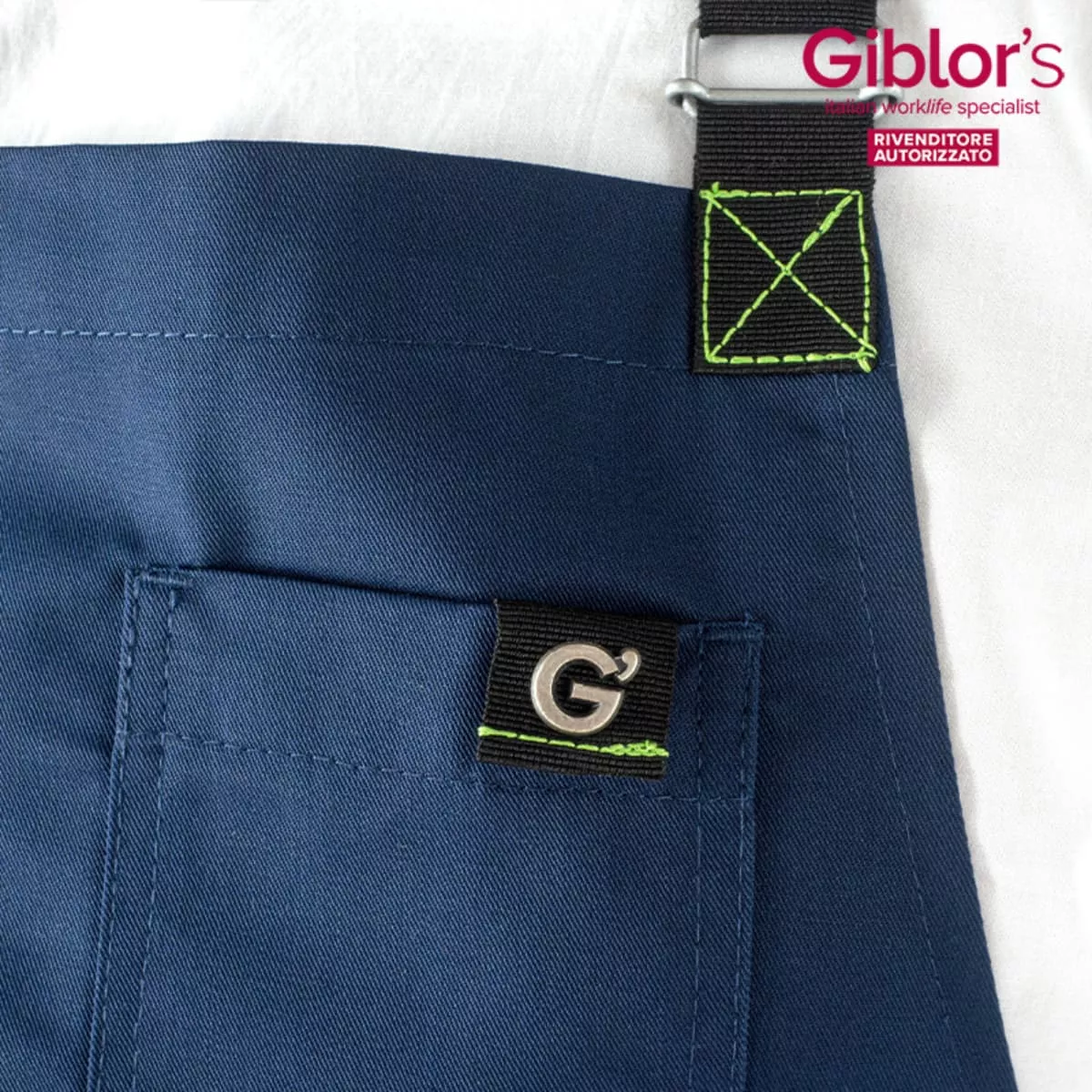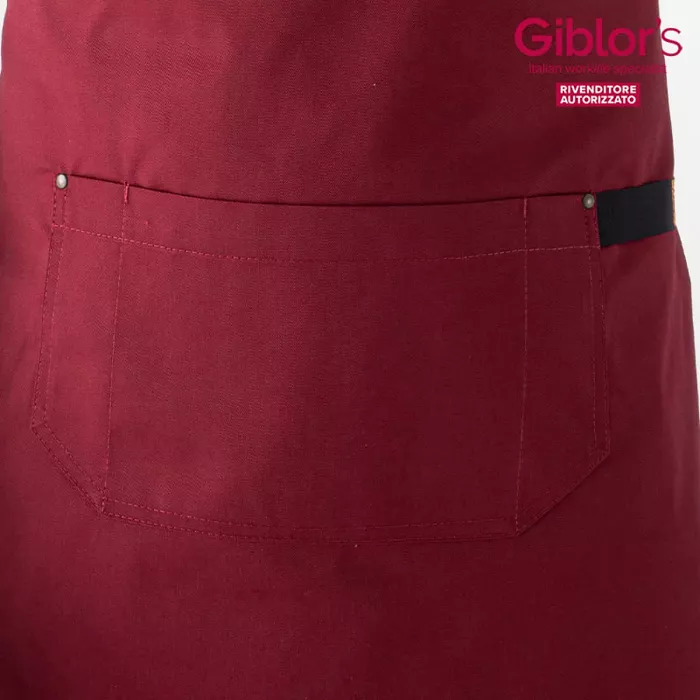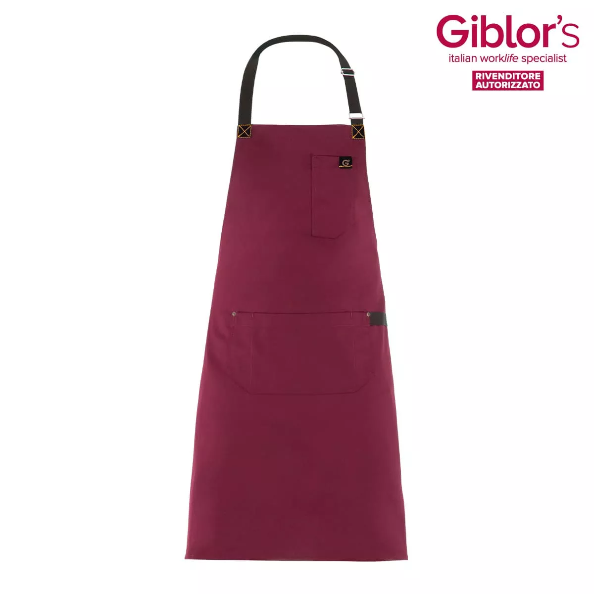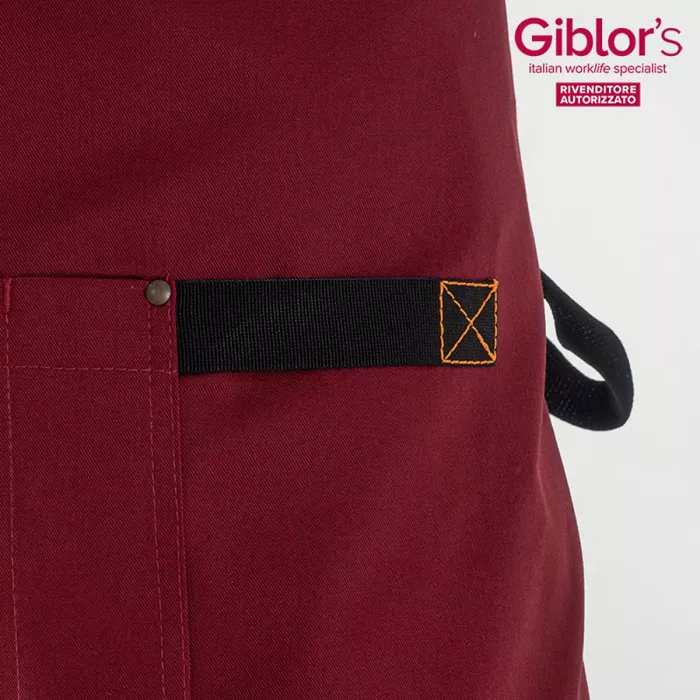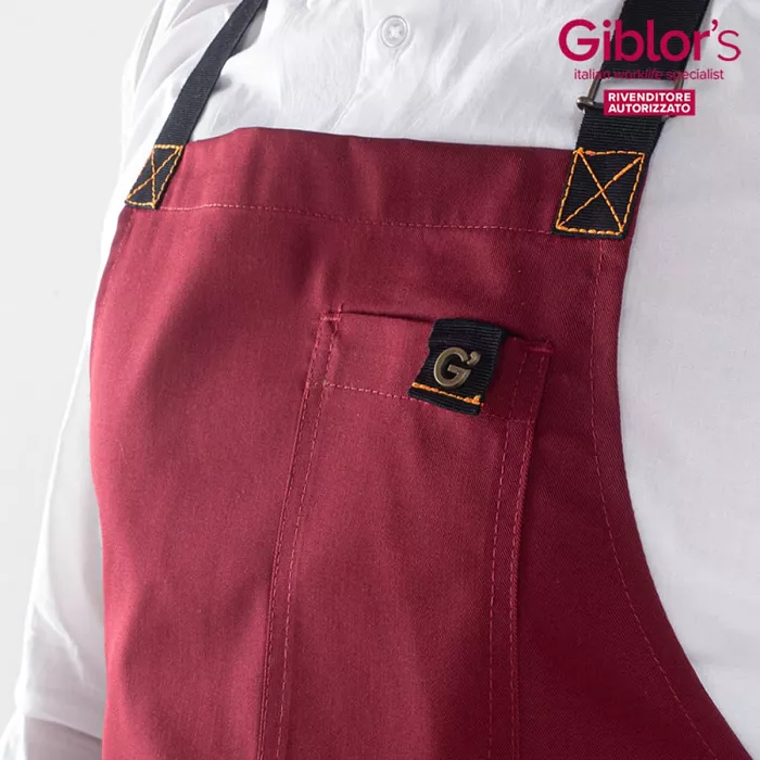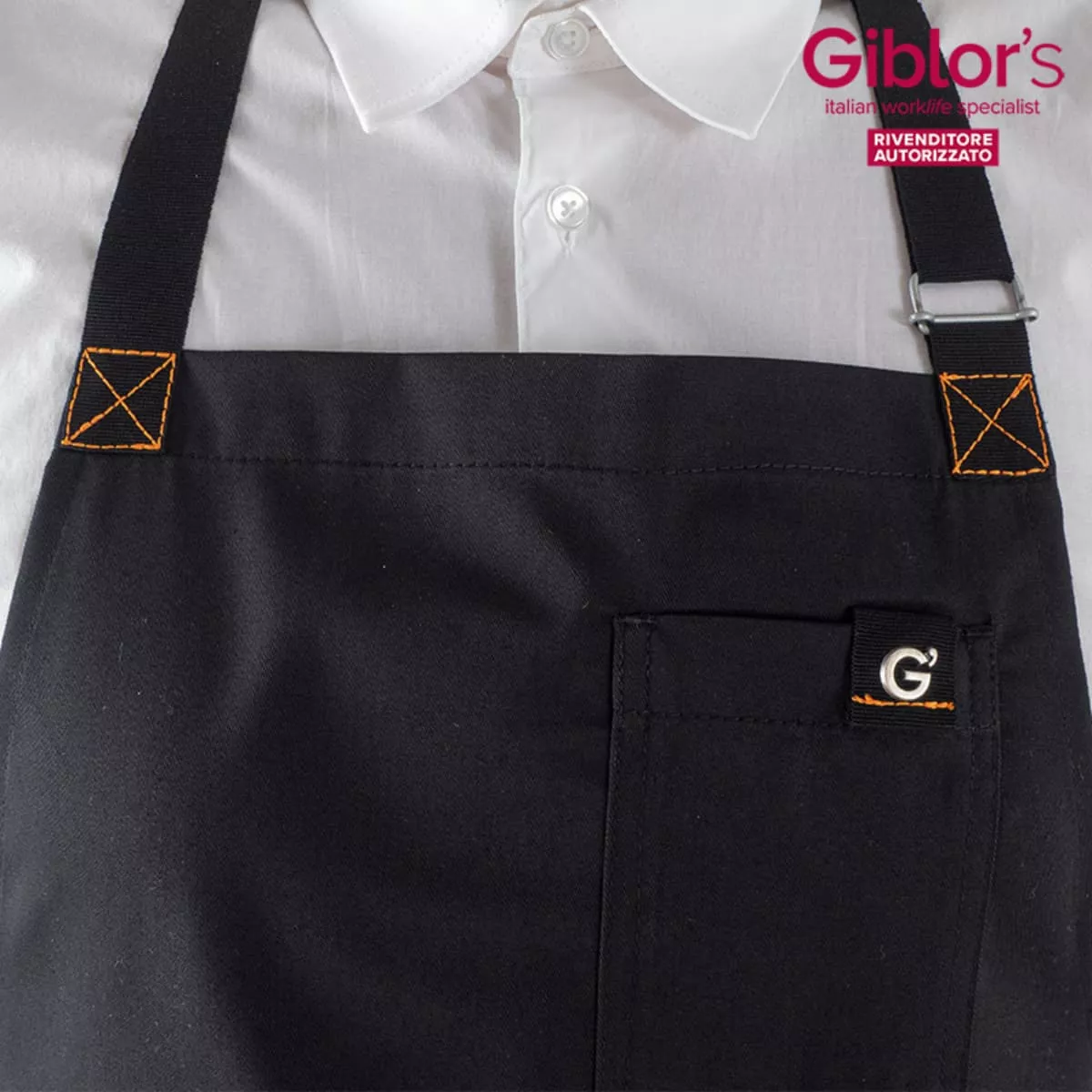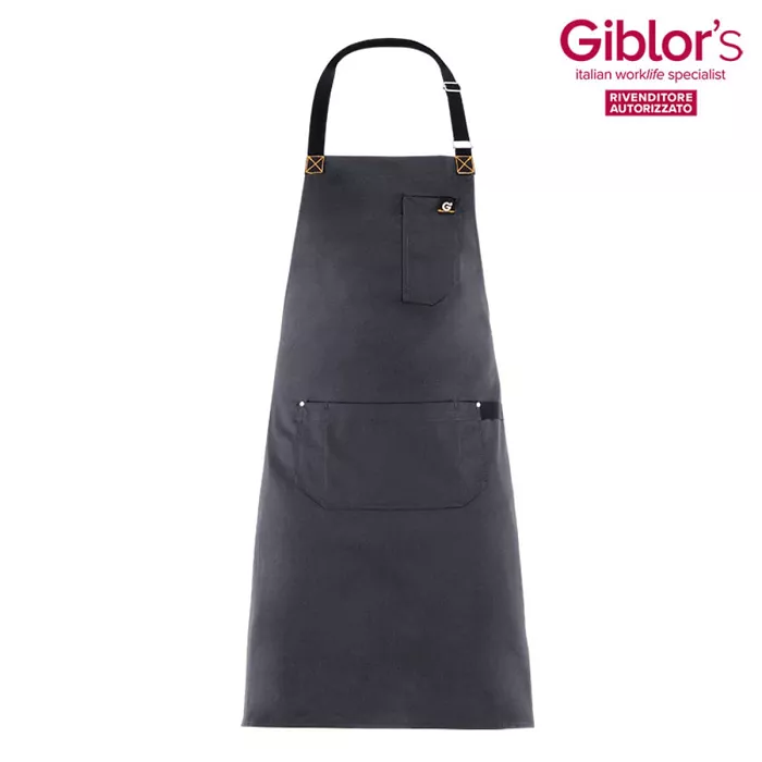 Grembiule Reno Giblor's della G’ Elegance Collection. E' un modello trasversale. Presenta due ampie tasche e i lacci che sono ancorati con travette che rendono il capo ancora piu' resistente.