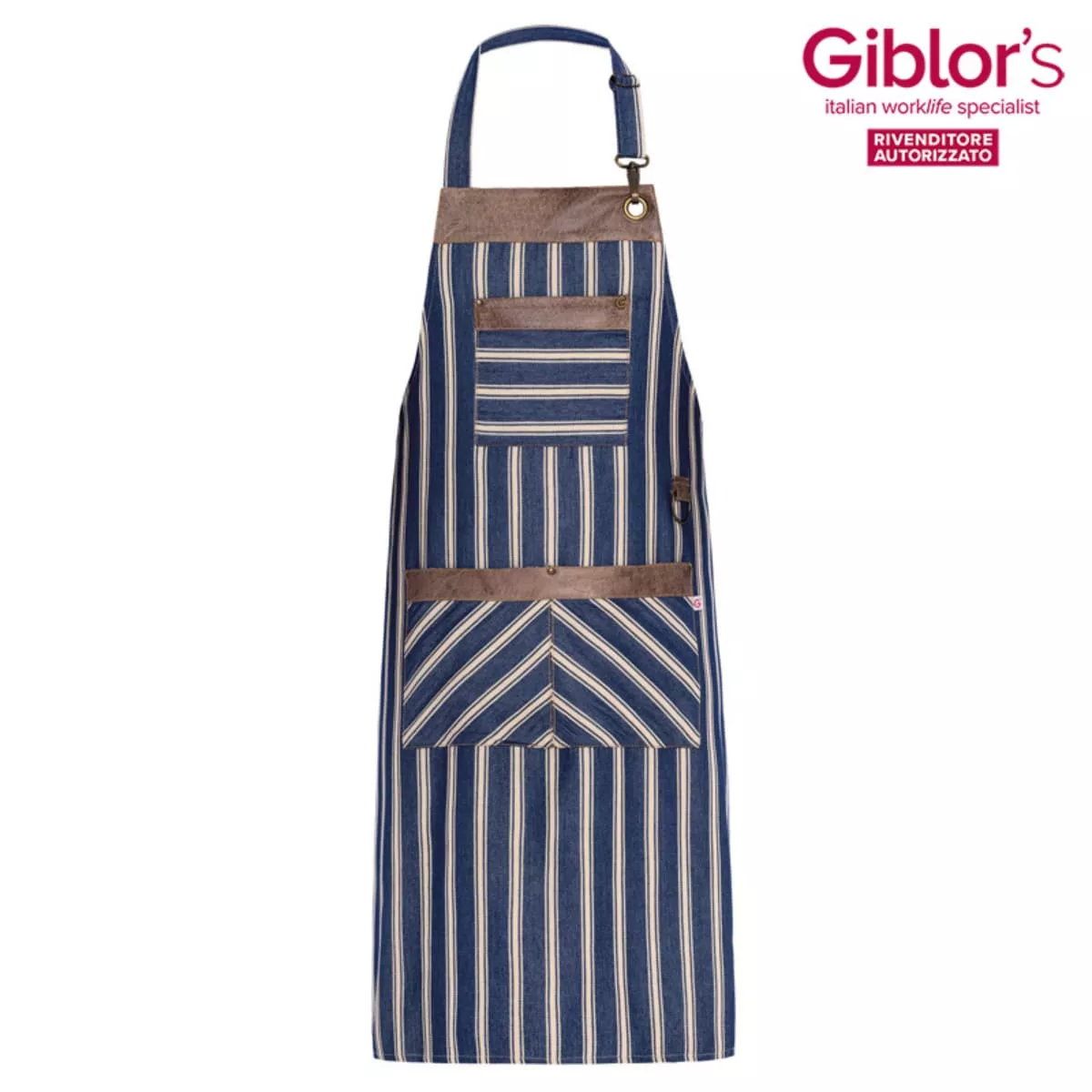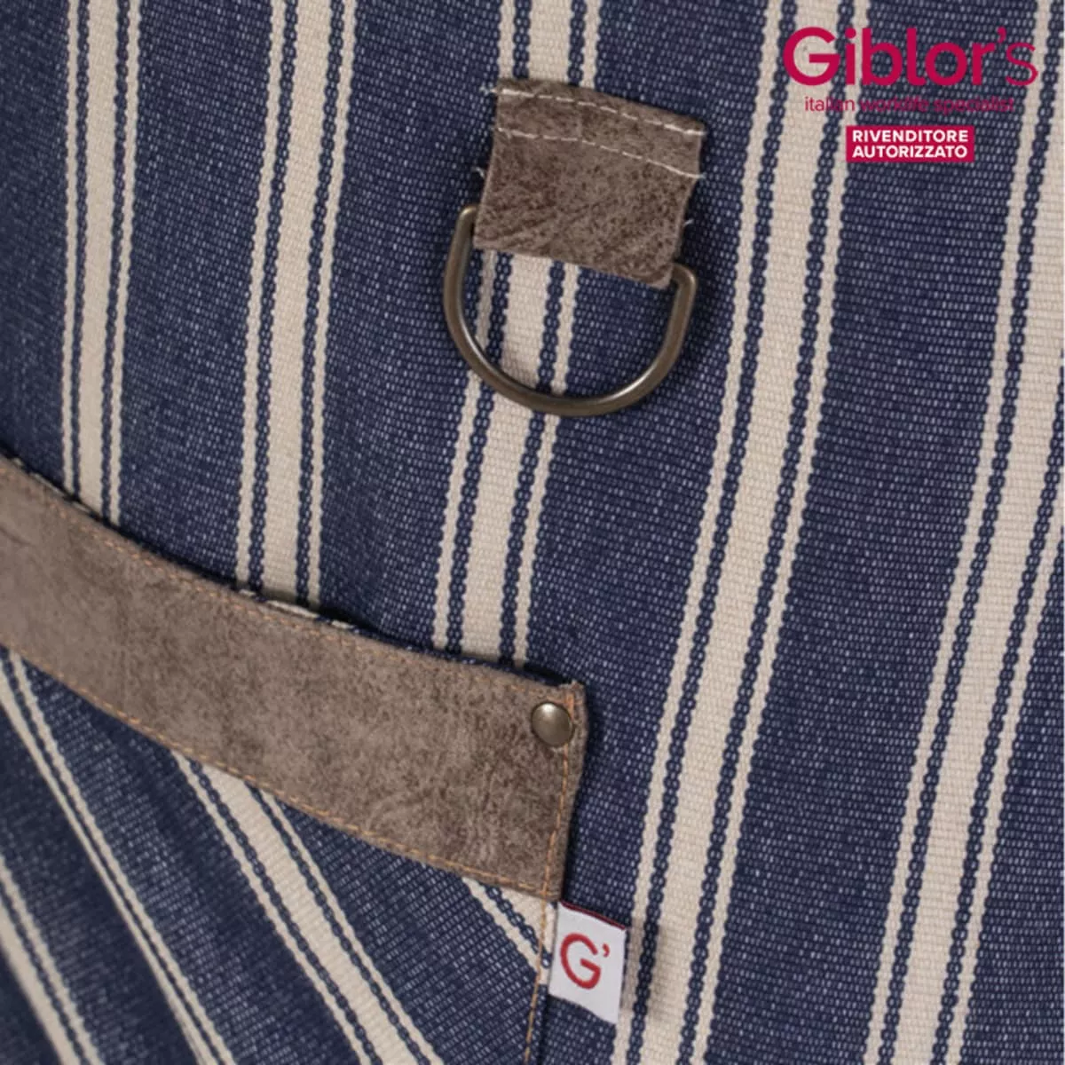 Grembiule Bari Giblor's della G’ Evergreen Collection. E' un capo versatile, presenta una tasca di discreta ampiezza, ancorata con travette. I lacci sono realizzati in un gross resistente dall'aspetto traslucido che dona eleganza e un leggero contrasto lucido opaco.